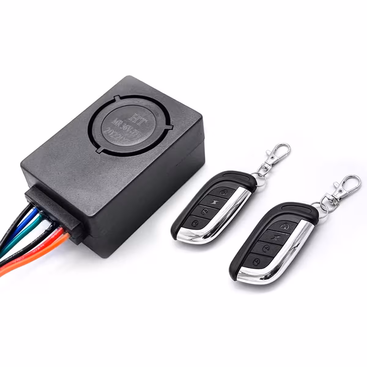 Sistema inteligente de proteção para scooters, bicicletas e patinetes elétricos 36V-72V. O alarme emite um som alto e possui controle remoto para ativação, desativação e localização rápida do veículo.