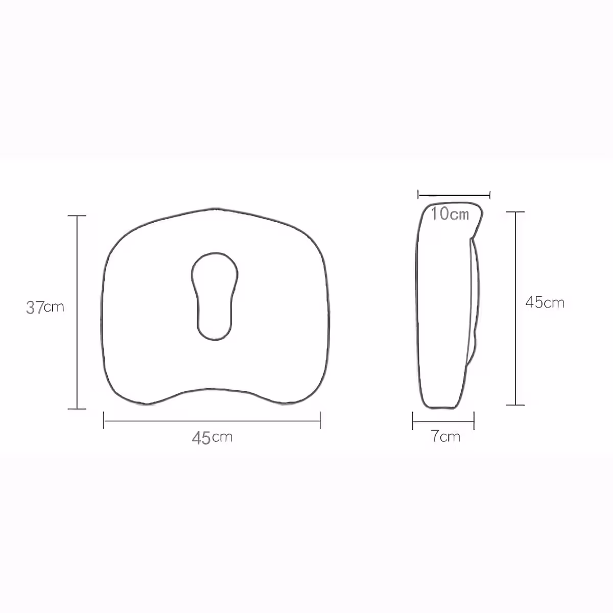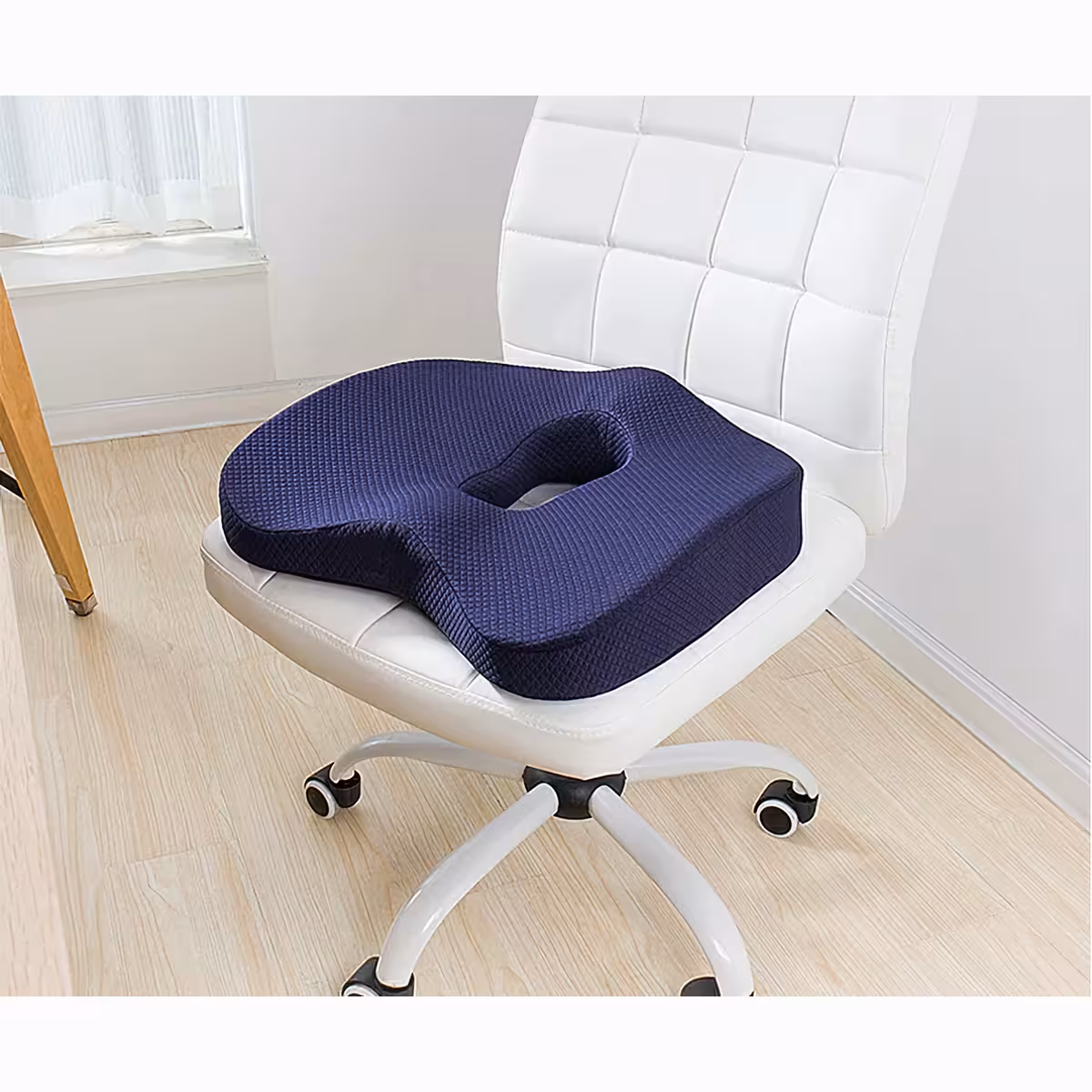 Graças à forma especial e aos materiais de qualidade, a almofada ajuda a aliviar a pressão exercida sobre a coluna, posicionando o cóccix na área recortada. Assim, você alcança uma postura correta e confortável, reduzindo dores nas costas e no cóccix desde o primeiro uso.