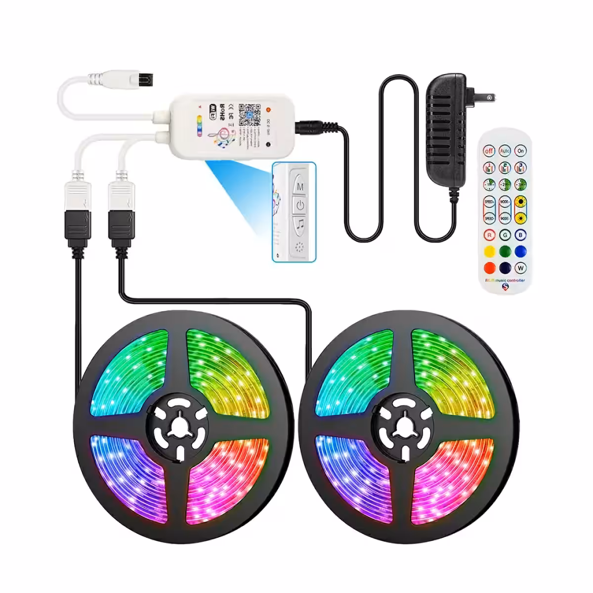 O controle remoto incluído com 24 botões proporciona mais conforto, enquanto a função dimmer regula a intensidade da luz conforme sua preferência. O modo musical sincroniza a iluminação com o ritmo da música, oferecendo um efeito dinâmico, perfeito para festas.