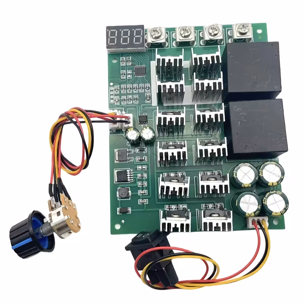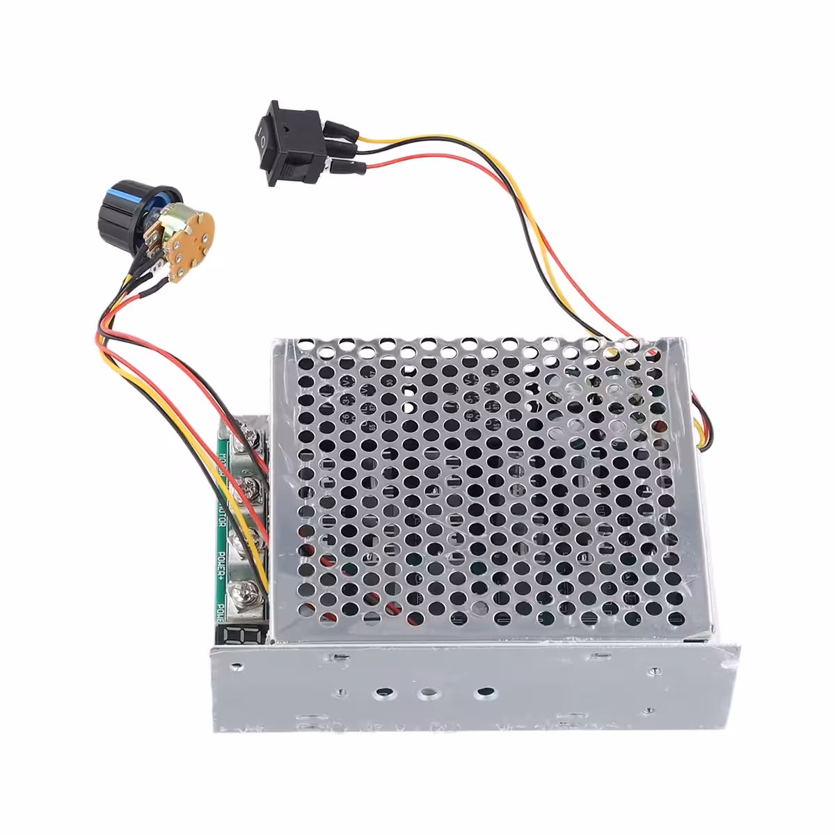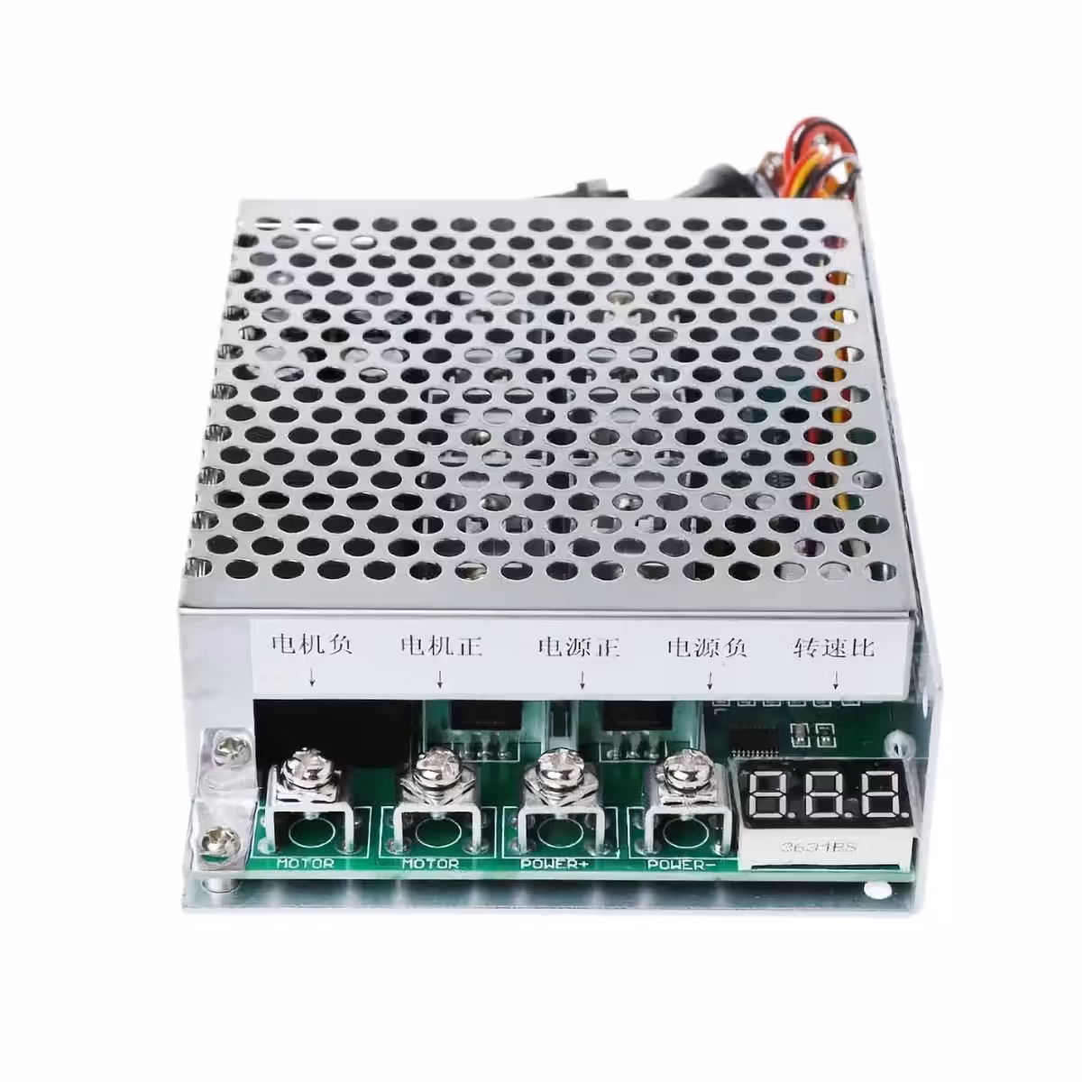 Controlador PWM profissional para controle da rotação de motores elétricos em corrente contínua (DC), ideal para aplicações de alta potência. Oferece ajuste preciso da velocidade via potenciômetro, função de inversão de sentido de rotação e display digital da rotação (0–100%). Compatível com tensões de entrada entre 10V e 55V e correntes de até 100A (60A contínuo).