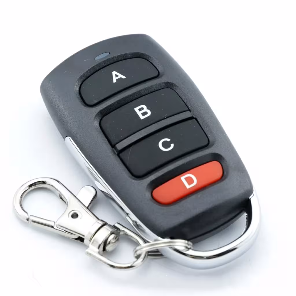 Este controle remoto adicional é ideal para expandir a funcionalidade de sistemas de controle RF de 433 MHz. É compatível com a maioria dos módulos de relé de 4 canais que utilizam códigos de aprendizado EV1527 ou código fixo 2262.