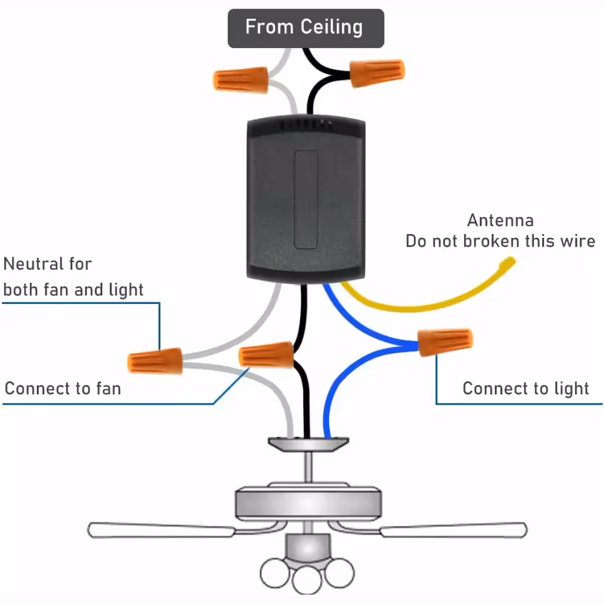 - Controle de dois circuitos: 1 para ventilador + 1 para luz