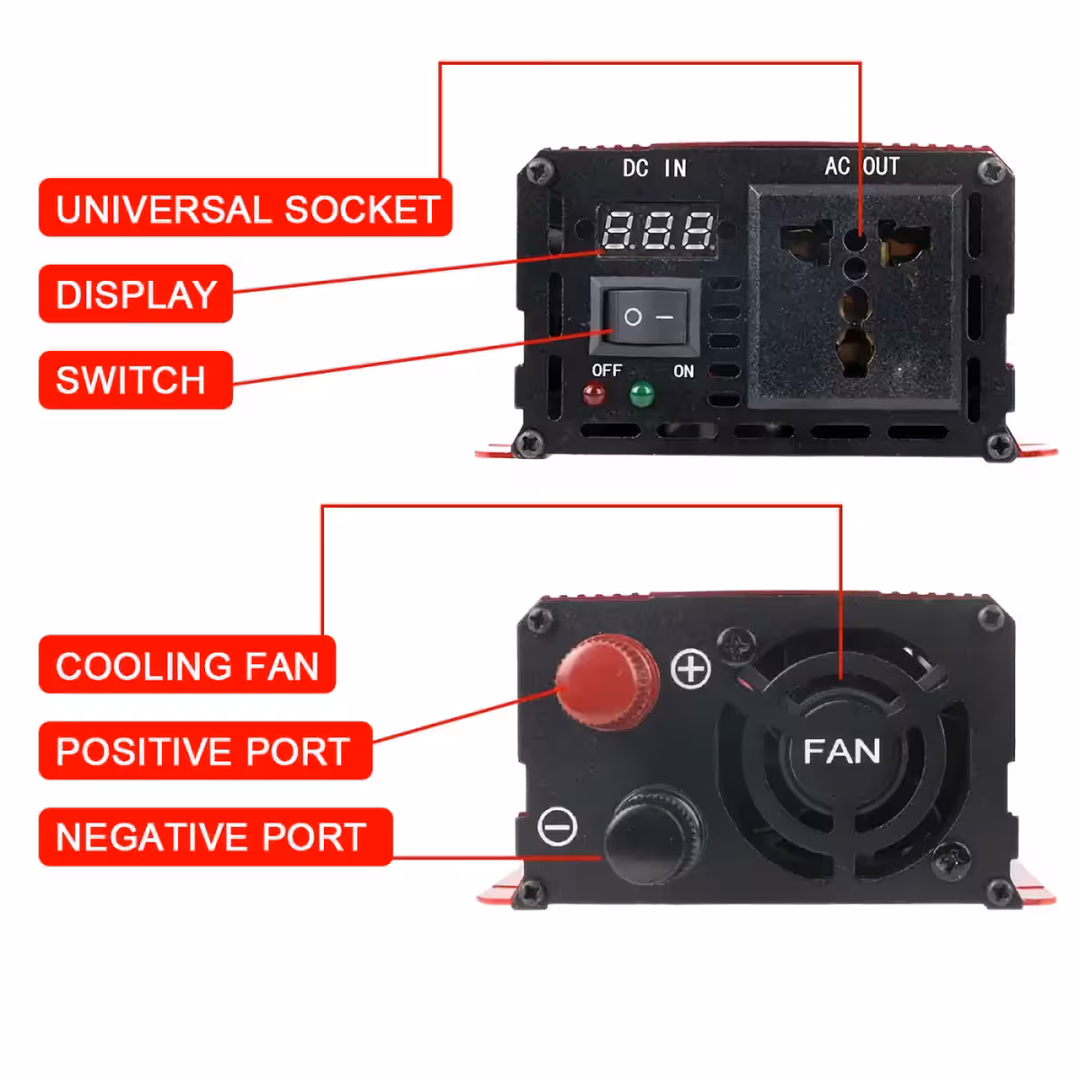 O inversor de 1600W com onda senoidal pura é ideal para alimentar dispositivos sensíveis e equipamentos elétricos. Ele fornece uma tensão de saída estável e limpa, perfeita para uso doméstico, sistemas solares, camping ou backup de emergência.