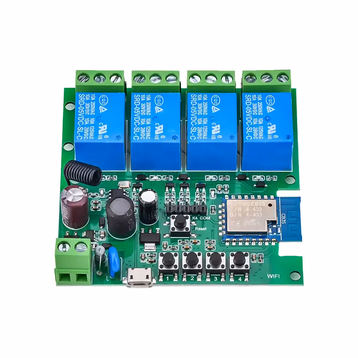 Relé WiFi Inteligente com 4 Canais – Controle Wireless Tuya Smart Life