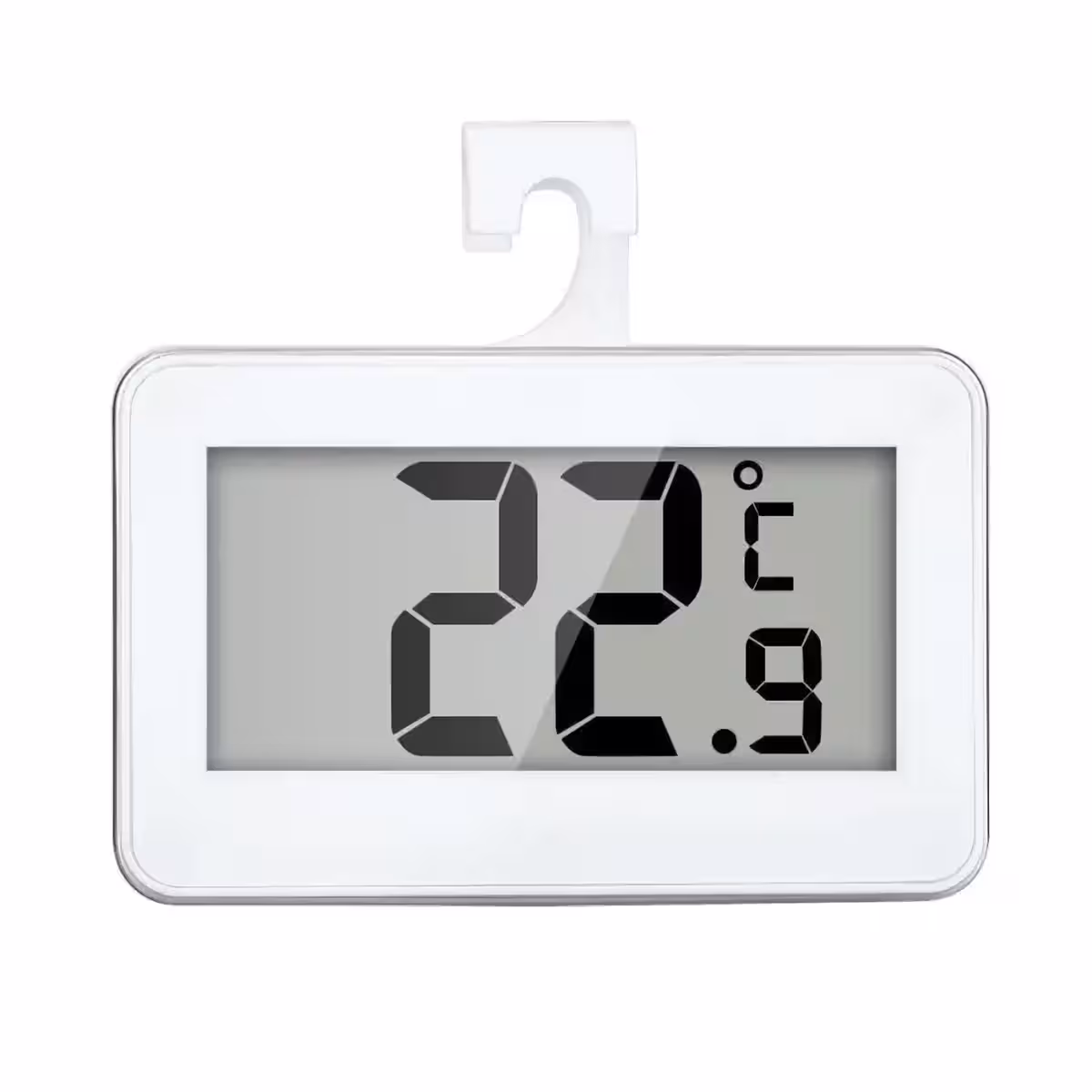 Termômetro digital com display grande, ideal para geladeiras, freezers, baús frigoríficos, banheiros ou ambientes internos. Fácil de usar, preciso e confiável para monitoramento da temperatura de alimentos ou do ambiente.