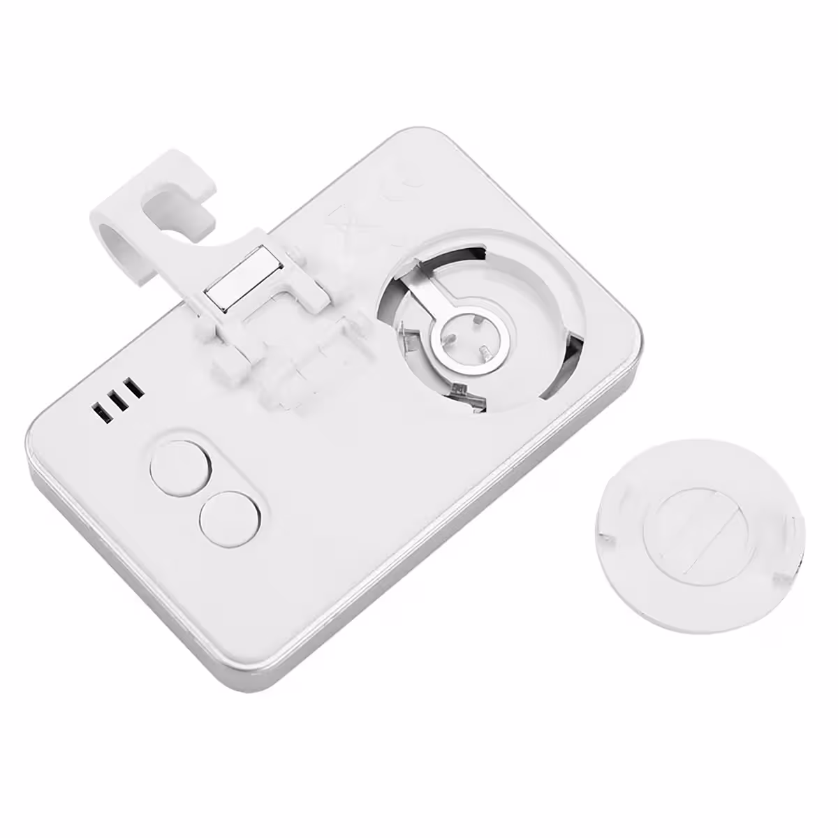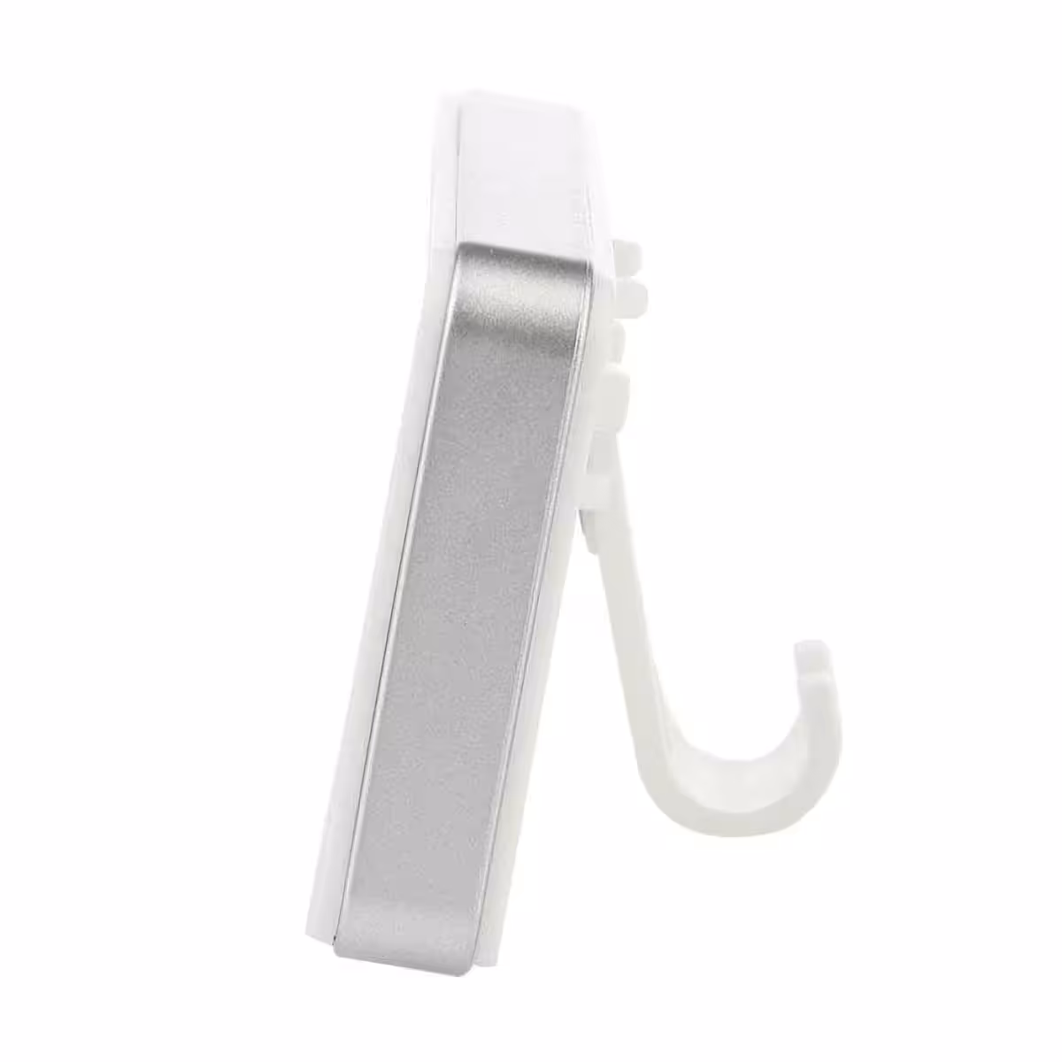Montagem flexível: três métodos de instalação – suporte dobrável para mesa, gancho para prateleiras, ímã para superfícies metálicas.